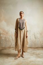 Maal work on Crushed tissue kaftaan with Russian silk inner and cotton satin pant