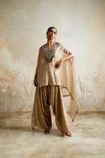 Maal work on Crushed tissue v kaftaan with Cotton lycra bustier and cotton satin asymetric pant