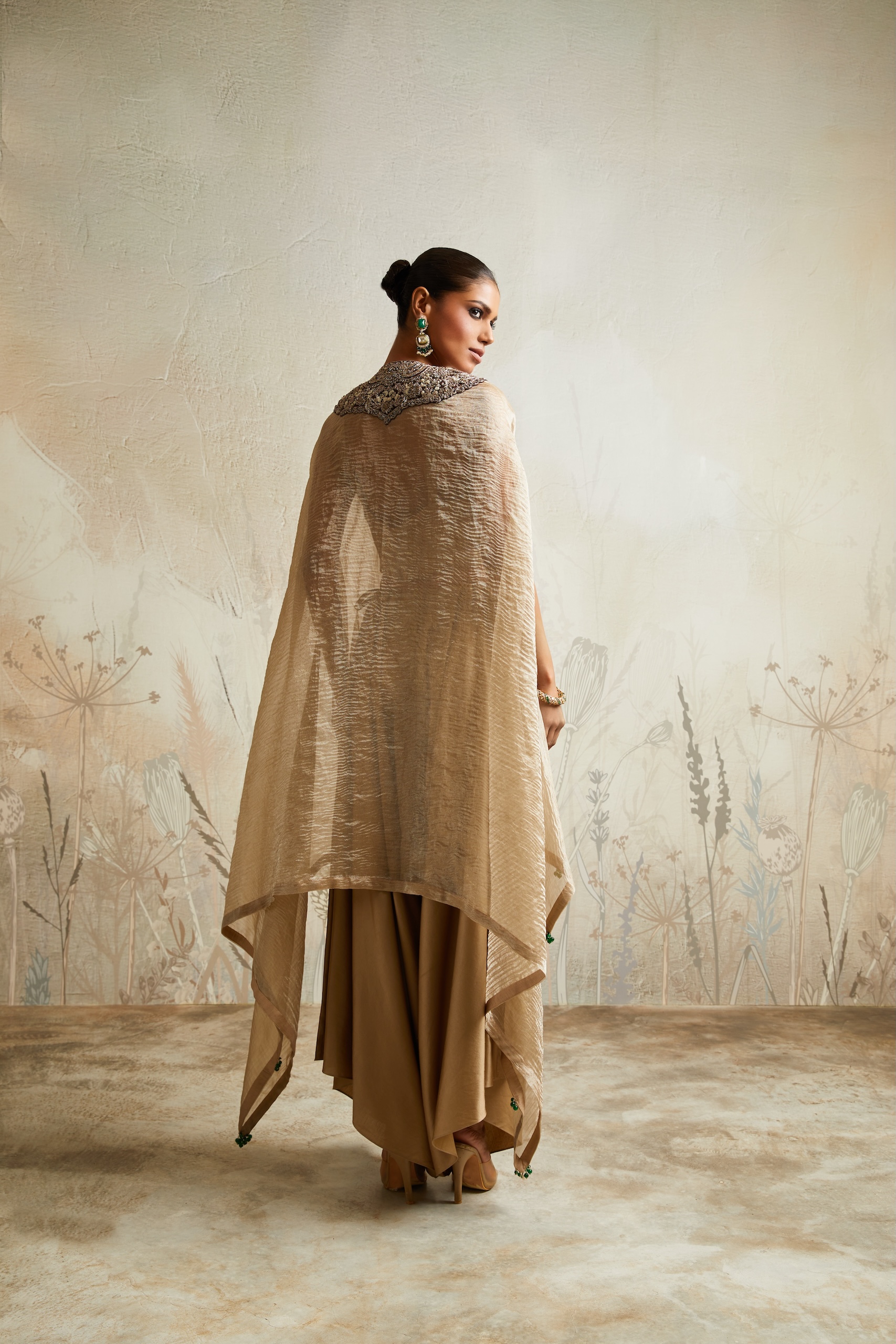 RS Brown Yoke Crushed Tissue V Kaftaan