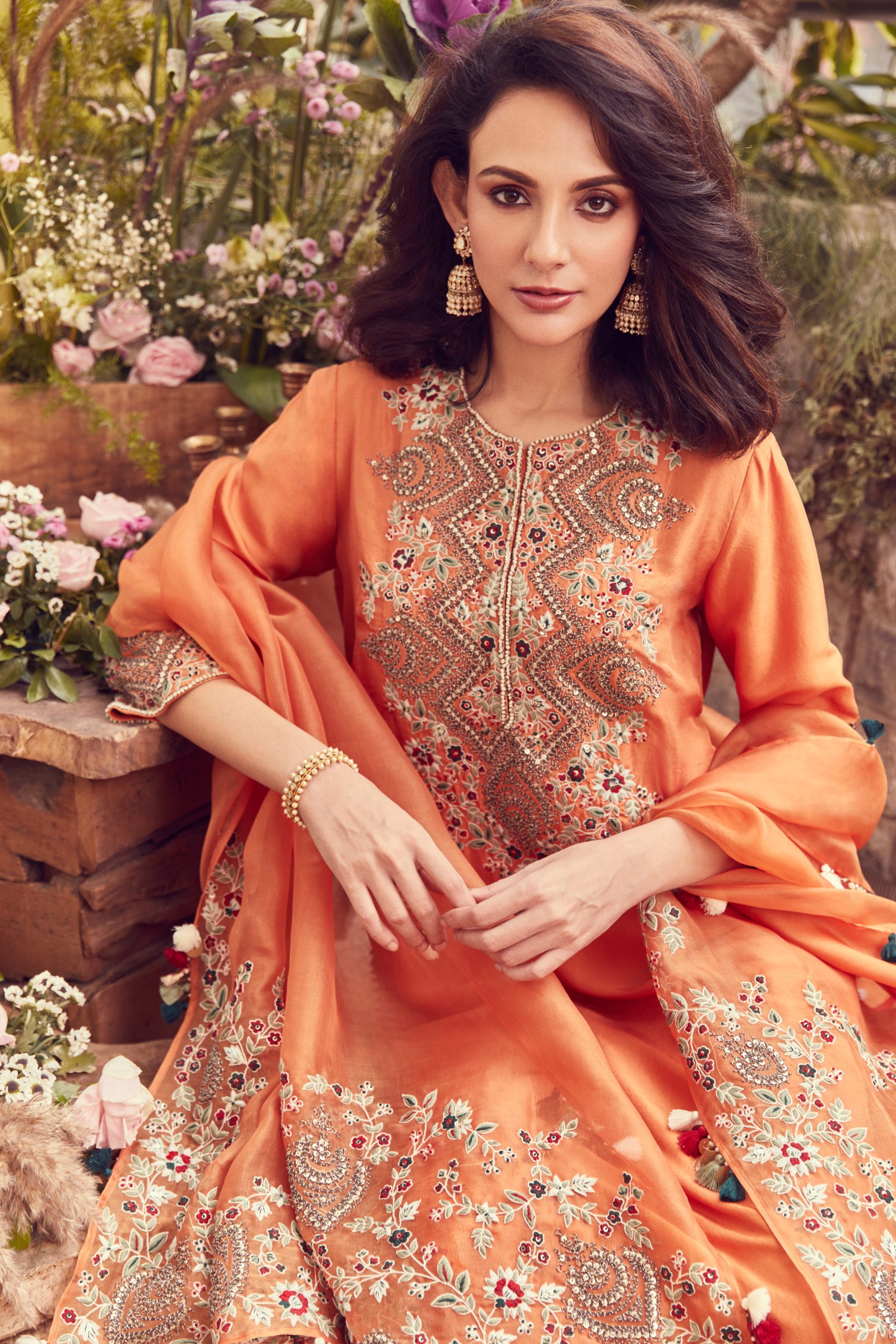 Be the first to review “Silk kurta with cotton satin sharara and organza dupatta”