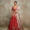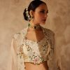If you’re wearing a saree or lehenga, a small bindi on your forehead can be a charming addition. A maang tikka, worn in the center parting of your hair, brings attention to your face and looks great when worn with lehengas.